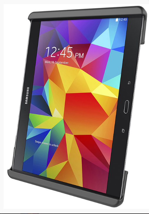 The RAM® Tab-Tite™ spring-loaded, quick release cradle offers a secure and easy method to mount your tablet. The interchangeable cup ends to suit the Samsung Galaxy Tab 4 10.1 and Tab S 10.5. The spring-loaded design makes it easy to insert and remove your tablet, along with keeping it secure in mobile applications. The custom end cups enable easy access to all ports and tablet functions.